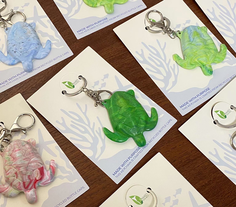 ฝาขวดพลาสติกถูกนำมาขึ้นรูปใหม่ด้วยเครื่องอัดฉีดโดยเปลี่ยนเป็นของใช้ที่มีประโยชน์ เช่น พวงกุญแจ หรือของตกแต่งเชิงรักษ์โลก สิ่งเหล่านี้ไม่เพียงช่วยลดขยะพลาสติก แต่ยังเพิ่มมูลค่าให้วัสดุเหลือใช้ อีกทั้งเปิดโอกาสให้ผู้เข้าพักได้สัมผัสประสบการณ์อัปไซเคิลและเรียนรู้การดูแลสิ่งแวดล้อมแบบยั่งยืน